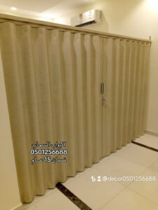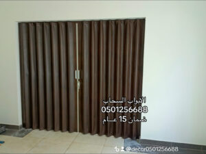أبواب منطوية سحابة مصنعة من قفص حديدي داخلي من مواد غير قابلة للصدأوكفرات رمان بلي ذات جودة عالية لسهولة الحركة والباب مغطى بطبقة من الجلدالصناعي المقاوم للماء والقابل للتنظيف بسهولة بالماء والصابون. كما يتوفر لدينا 20 لون ليتمكن المستهلك من اختيار مايناسبه ليتماشى مع المكان المطلوب تركيب الباببه. بالاضافة الى ماجاء اعلاه هناك خيارات اخرى للمستهلك مثل عزل الصوت والغبارأو تركيب أقفال ومثبتات اضافية ارضية. ابواب سكريت مع مكائن ايطالي وإكسسواراتسنستيل مقاوم للصدى تركيب واجهات زجاج وابواب زجاج عادي ومرملbr>ومعشقتركيب ابواب تعزل الصوت واضافة عازل الأبواب الموجوده اتصل نصل 0545499882